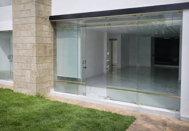 ✔️ Fachada moderna con vidrio, ideal para branding y vitrina